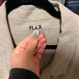 FLAX Linen Shirt Jacket Shacket Blazer Womens Size L Button Down Lagenlook Beige
