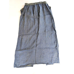 FLAX Linen Skirt Small Blue Denim Boho Lagenlook Natural Pull On Stretch Pockets
