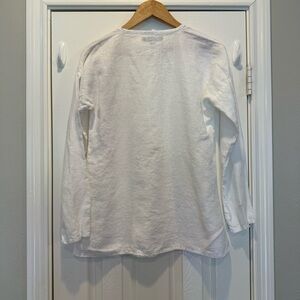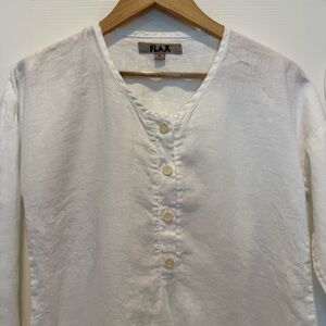 FLAX Long Tunic Top White 100% Linen Size P XS Long Sleeves Summer Lagenlook