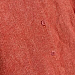 This lightweight top has a mandarin style collar, button front and cuffed sleeves. It is in a beautiful orangey red color.