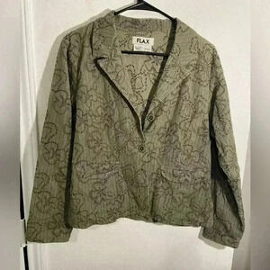FLAX Olive Green Embroidered Shamrock Pocketed Blazer Jacket Womens Size Small