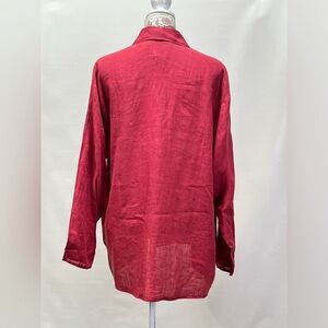 Red 💯 Linen long sleeve tunic shirt from FLAX, size S. Top has button front closure.