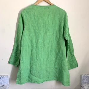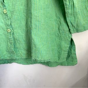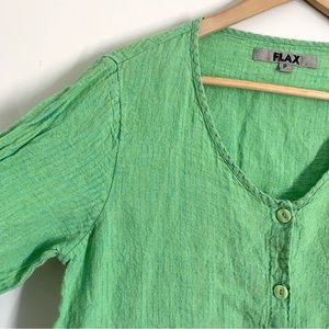 FLAX SALE Linen Longline Oversized Striped Button Top Green size 4-6 (P)