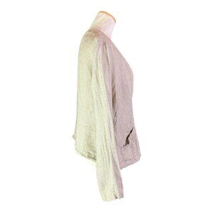 FLAX Size M Grey Button-Front Jacket Linen Pockets V-Neck
