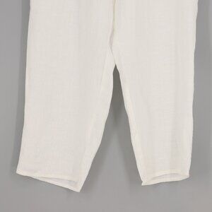 FLAX Two Piece 100% Linen Button Front Top (M) & Pull-On Pant (L) Off-White Ecru