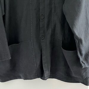 FLAX by Jeanne Engelhart 100% Linen Black Oversized Button Front Blazer Jacket L