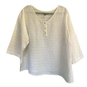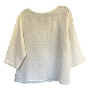 FLAX by Jeanne Engelhart 100% Linen 3/4 Sleeve Lagenlook Cream Ivory Eco-Friendly Sustainable Blouse Tunic Top Size Large