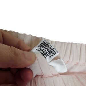 Breezy comfort meets effortless style in these charming linen pants. Imagine the soft, breathable fabric gently caressing your skin as you move with ease. These pants feature a flattering cropped length and a comfortable elastic waistband, ensuring a perfect fit for all-day wear. The subtle pink hue adds a touch of femininity, while the practical side pockets offer convenience without compromising the clean lines. Perfect for a relaxed weekend brunch, a casual stroll through the park, or a laid-back vacation getaway.