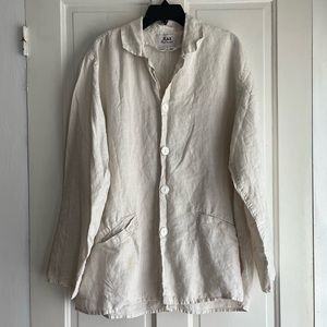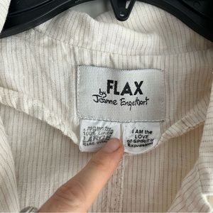 Flax by Jean Engelhart collared shirt. 100% linen, white and cream striped. The linen is ‘broken in’ and perfectly soft.
