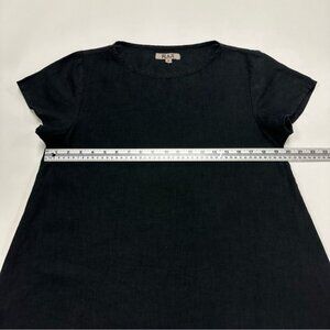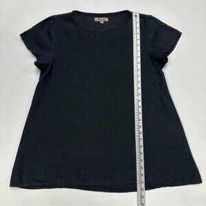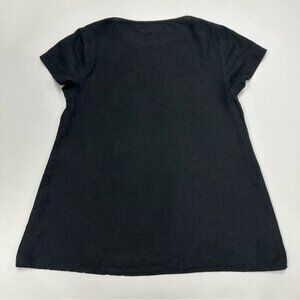 FLAX solid black linen round neck short cap sleeve top Medium minimalist