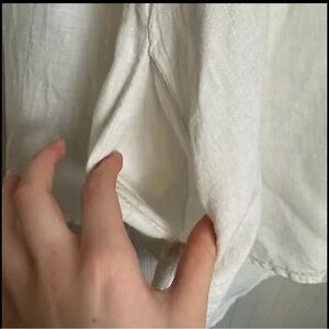 FLAX white linen pullover hoodie long sleeve pockets size small H48