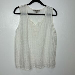 FLAX Linen Textured Off White Sleeveless V-neck Top Size M