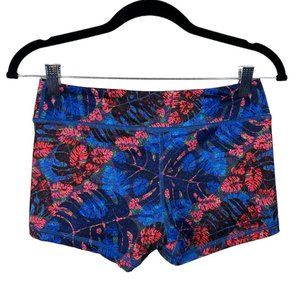 FLEO Red & Blue Tropical Leaf Print Workout Shorts