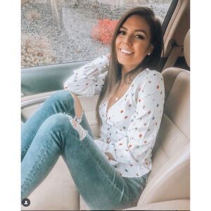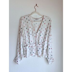 FLETCH by Jojo Fletcher Long Sleeve V-Neck Diamond Gemma Printed Blouse in Multi