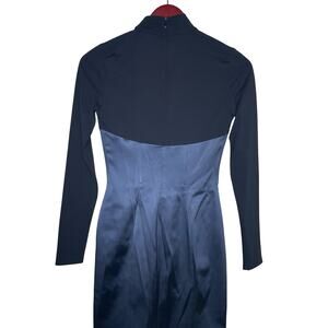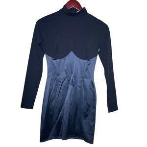 FLEUR DU MAL Mock Neck Long Sleeve Mini Dress in Black and Deep Blue Slate Sz 4