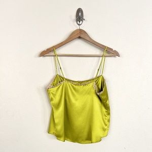FLEUR DU MAL Straight Neck Lace Trim Cami Top in Chartreuse