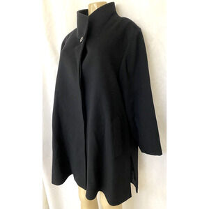 FLEURETTE LORO PIANNA Wool Stand Collar Car Pea Coat Jacket Black Pocket…