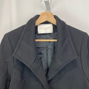 FLEURETTE Loro Piana Size 2 Wool Coat Button Up Long Sleeve Side Slit Black USA