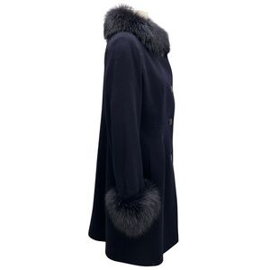 FLEURETTE MIDNIGHT FOX FUR TRIMMED WOOL COAT