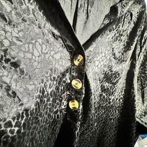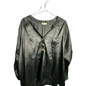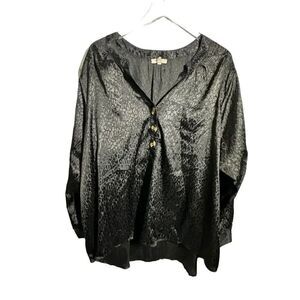 FLINT & MOSS womens Size 3X black tunic top long sleeve blouse tonal print