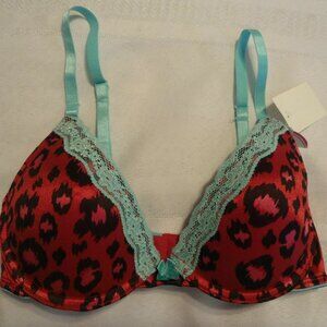 FLIRTITUDE Red Leopard Satin With Lace Push Up Bra NWT 34A 32B 32A Choice 2950