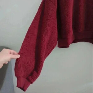 •	Style: Pullover sherpa, cropped style, long sleeved, ribbed waist and wrists, crewneck, stretchy