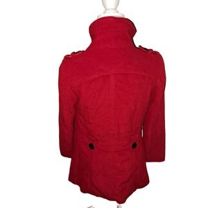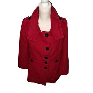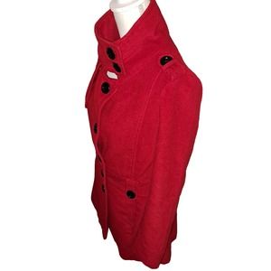 FLIRTY RED Coat Black Fleece Buttons peek-a-boo button up neck Sz SMALL Ladies
