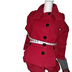 Beautiful Pre-Owned in Great condition (rip inside under one arm) the rest is perfection- Red sassy & FLIRTY Size Small in Womens (The size shows 55, but I am a small and this is a perfect size 2 to 4 buttoned) Flirty Form fitting with room to move soft Fleece style materiel with Oversized Black buttons and two top buttons that can be left open at the neck or closed to create a flirty peek-a-boo opening. WONDERFUL RARE jacket made by LAEL and VINTAGE Beauty! Elegant, Flirty, and Classic to hold on to forever as it will always be in style.