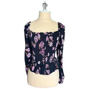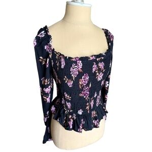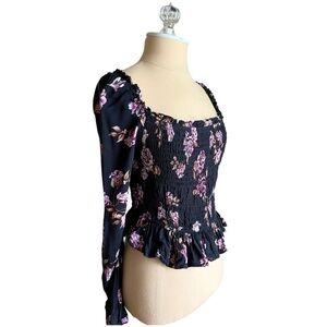 FLIRTY Wild Fable Floral Cropped Smocked Long Sleeve Square Neck Boho Top Medium
