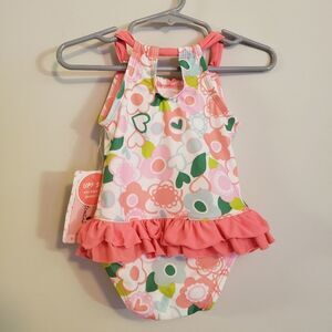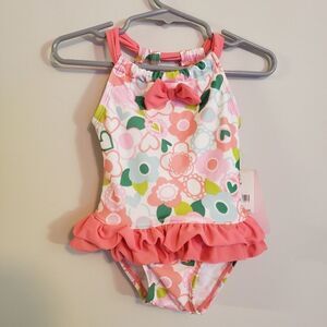 FLOATIMINI RUFFLE FLORAL PRINT ONE PIECE SWIMSUIT BATHING SUIT SIZE 18 MONTGS