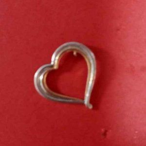 THIS VINTAGE FLOATING HEART IS A 2 TONE PENDANT... GOLD TONE AND SILVER TONE ON ONE SIDE AND THE OTHER SIDE IS SILVER TONE ONLY WITH THE WORDS " SOME DAYS LOOK BETTER UPSIDE DOWN" ON THE OTHER SIDE.. IT IS A LOVELY PENDANT.. WOULD MAKE A GREAT GIFT OR FOR YOURSELF NEEDS A GOOD CLEANING BUT OTHER THAN THAT IT IS A NICE PIECE...