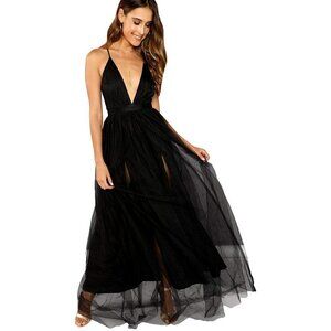 FLOERNS Plunging Neck Spaghetti Strap Maxi Cocktail Party Dress sz(XS)