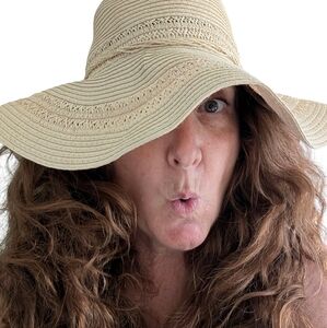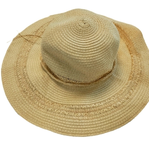FLOPPY Rafia Straw Hat New Hello Sunshine Wide Brim Beach Jacobson Vintage Tan