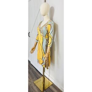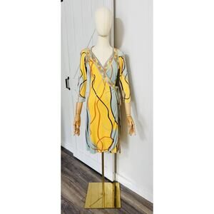 FLORA KUNG Size US 4 Silk Jersey Mock Wrap Shirt Dress Signature Logo