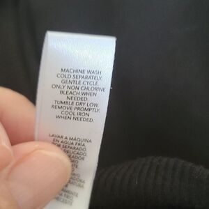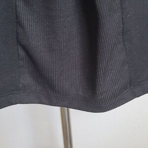 Gorgeous woman's black pullover top. Very soft and comfortable. V neck, short sleeves, different fabric on each side under armpit.