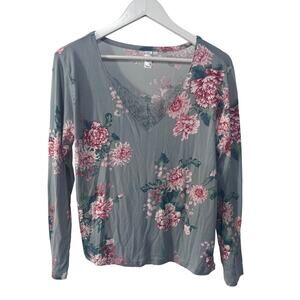 FLORA NIKROOZ WOMENS SMALL JADE FLORAL PRINTED LONG SLEEVE PAJAMA TOP ONLY GREY