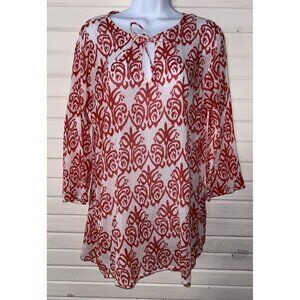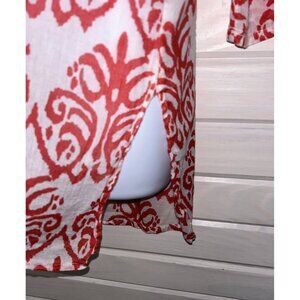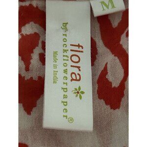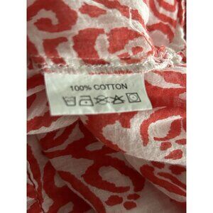 FLORA Rock Flower Paper Sz MEDIUM Red White Ikat Print Top Tunic 100% Cotton EUC