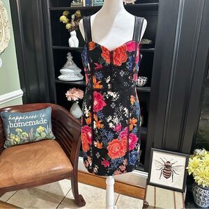 FLORAL CORSET-SEAM BODYCON DRESS IN BLACK FLORAL Size 12
