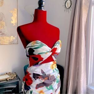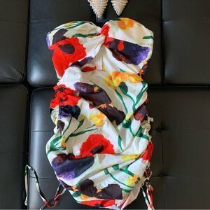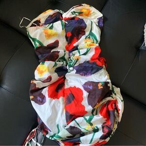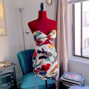 LOVE & LEMONADE Floral Cutout Ruched Mini Dress