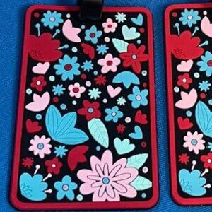 FLORAL / FLOWER SET OF 2 EASY TO SEE / UNIQUE LUGGAGE / BACKPACK / BAG TAGS TRAVEL / TRAVELING