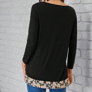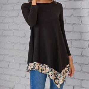 FLORAL HEM ASYMMETRICAL LONG SLEEVE TOP