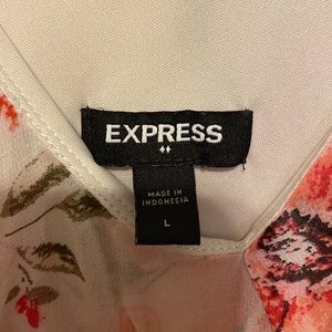 The dress is from express and is a size large. It runs true to size. The dress has an elastic waistband, and no zippers.