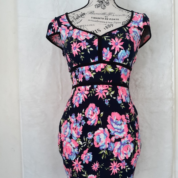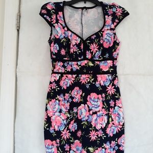 Pre-loved cute floral print dress by Flamingo. Dress is a size small but has lots of stretch for a perfect fit. Excellent used condition no stains or snags. Please see photos. :):)