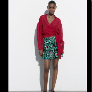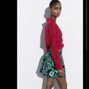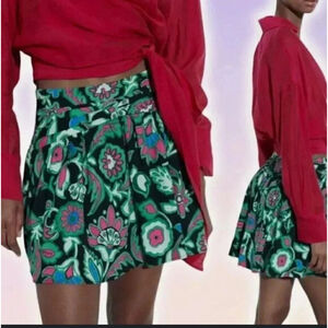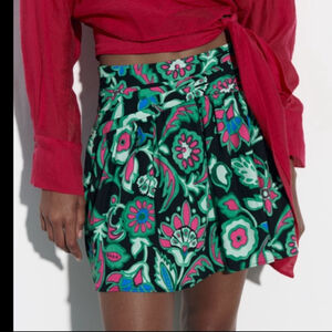 💚 FLORAL PRINT LINEN BLEND MINI SKIRT