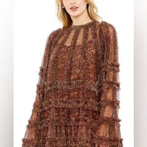 FLORAL PRINT LONG FLARE SLEEVE MESH A-LINE DRESS size 4 NWOT