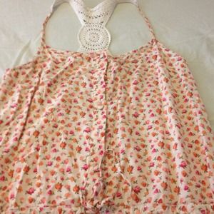 PERFECT FOR THE SUMMER!!!! Cute romper with floral print and crochet detail on the back part. Very comfortable and lightweight.