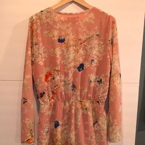 Super cute floral romper, size Large, NWOT, waist stretch, pockets in shorts, great fit, bundle and save!