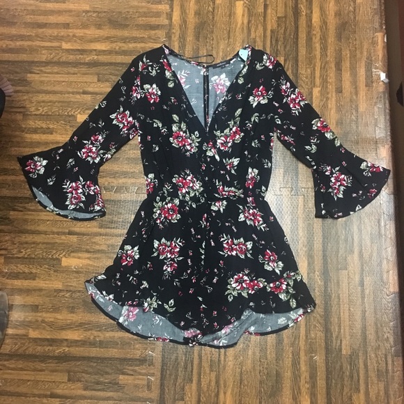 Beautiful floral romper. Long sleeves with. Ruffles on the ends of the bottom. Hugs at the waist. Flattering and girly. Comfortable and easy to style. Brand new and never worn.