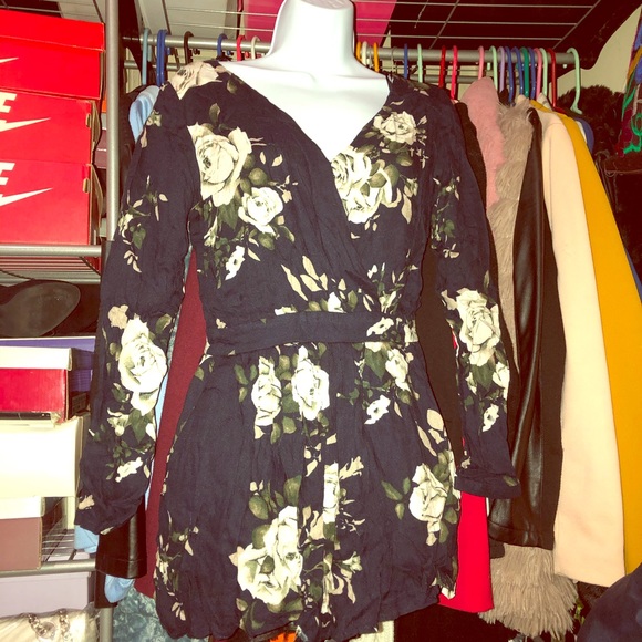 Long sleeve floral shorts romper ๐๐ฅ super girly and cute. Great condition and good quality. Beautiful floral detail on dark blue romper...worn once.