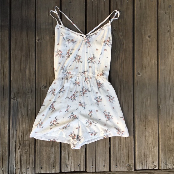 FLORAL ROMPER WITH CRISSCROSS DETAILS